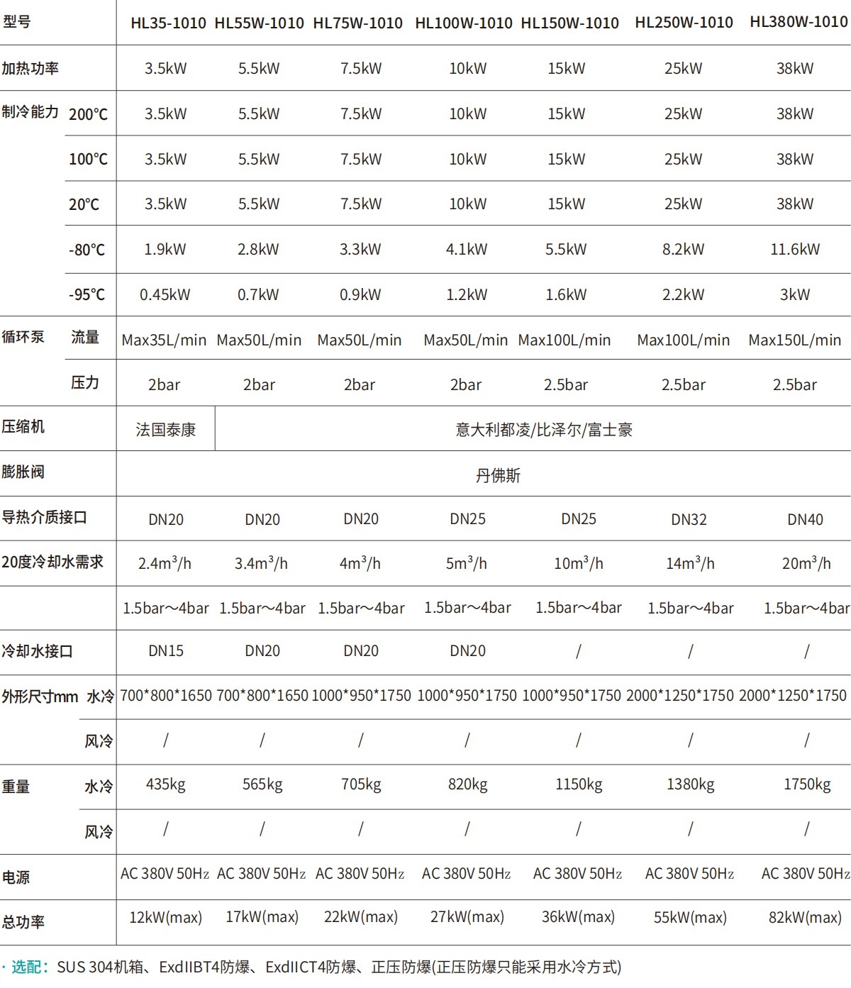 | 100℃ | 20℃ | -80℃ | -95℃ | 流量 | 壓力 | 水冷 | 風冷 | 水冷 | 風冷 | ||||||||||